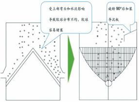 圖4收球網改造前后膠球分配示意圖