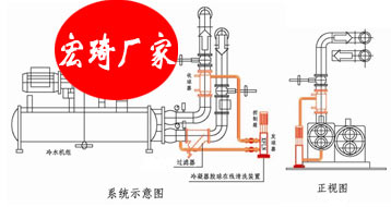 全自動膠球清洗裝置是指在冷水機組不停機的情況下,隨著系統的運行,對換熱器換熱管內壁進行清洗。市面上全自動清洗系統主要分為兩種,一種是全自動膠球清洗裝置,另一種是膠球在線清洗系統。