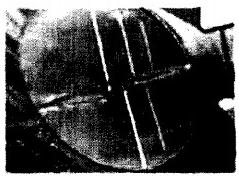 由于現(xiàn)場空間有限,不可能在收球網(wǎng)上方留出相當?shù)闹惫芏,因此,在凝汽器出水彎管段中水平焊接一不銹鋼折流板,見圖2。該折流板位于彎管段中心線處,將循環(huán)水流一分為二,用以規(guī)整彎管內(nèi)循環(huán)水流,使循環(huán)水能夠均勻地流經(jīng)收球網(wǎng),以利于膠球收集。