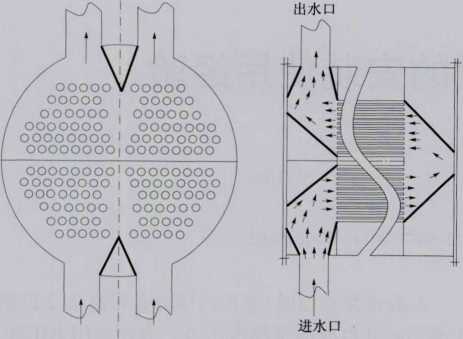 圖2凝汽器水室內(nèi)部増加導(dǎo)流板示意 粗線條為增加的導(dǎo)流板